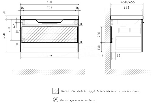 Тумба под раковину Mirage 80 1 ящик подвесная графит софт