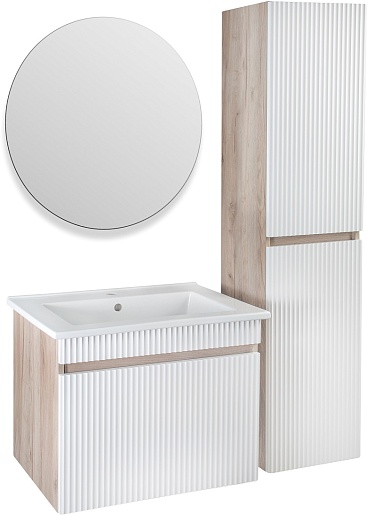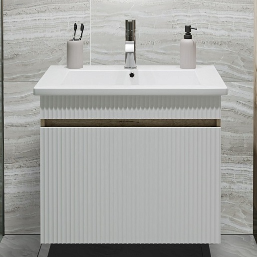 Тумба под раковину Модена 65 подвесная белая/дуб крафт
