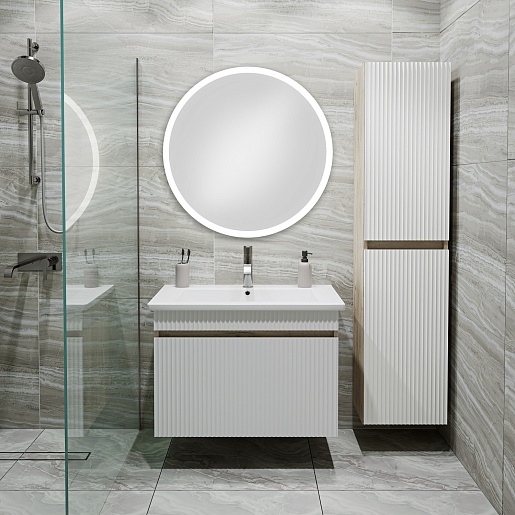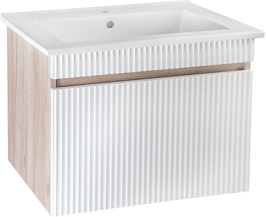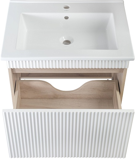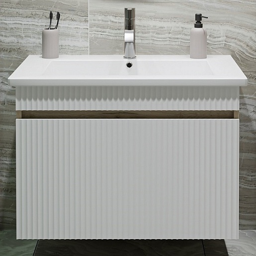 Тумба под раковину Модена 75 подвесная белая/дуб крафт