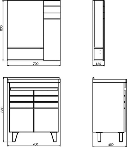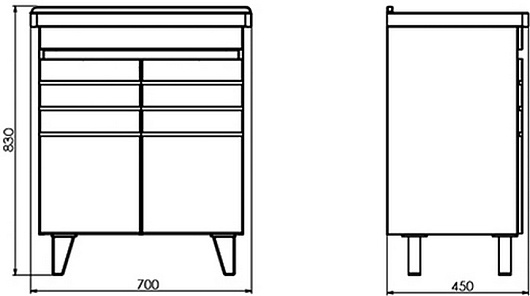 В комплекте: тумба, раковина, ножки.