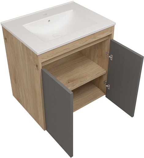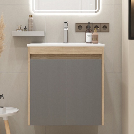 Подвесная тумба с раковиной Teymi Netta 60 дуб/графит - арт. T60602 / T60609 / T51002.