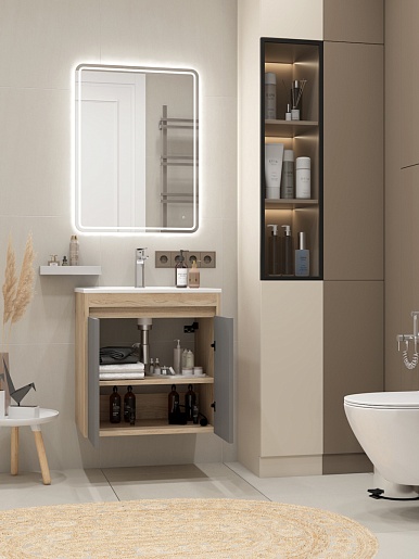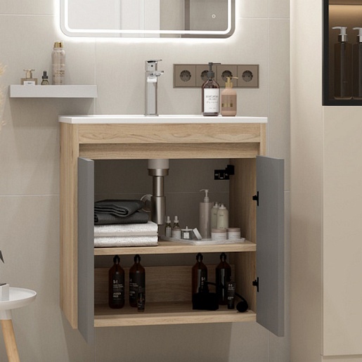 Тумба под раковину Netta 60 подвесная без фасада дуб