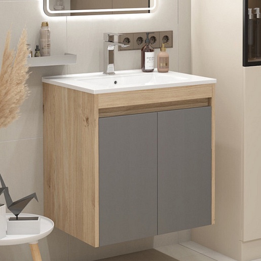 Teymi Тумба с раковиной Netta 60 подвесная дуб/графит