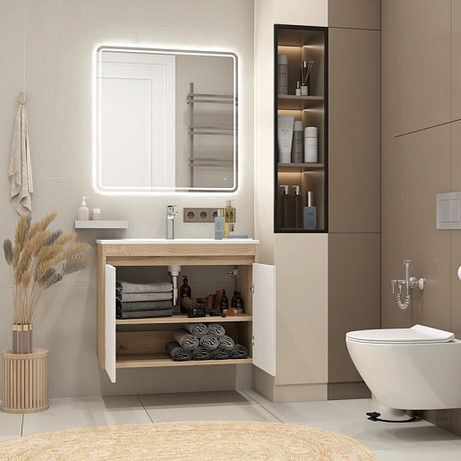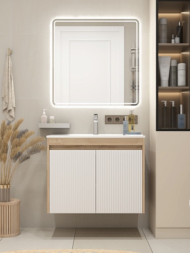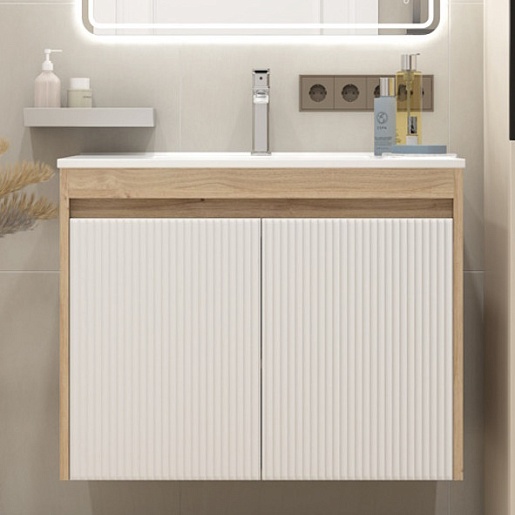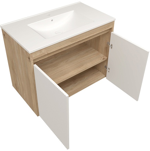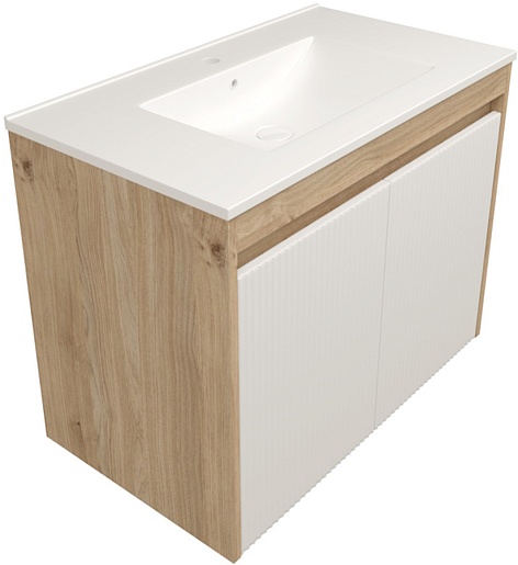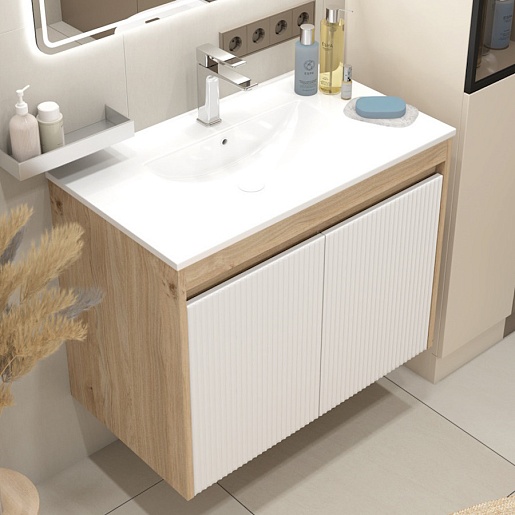 Подвесная тумба с раковиной Teymi Netta 80 Волна дуб/белый - арт. T60605 / T60624 / T51001.
