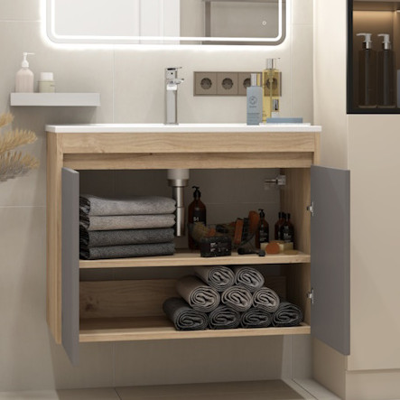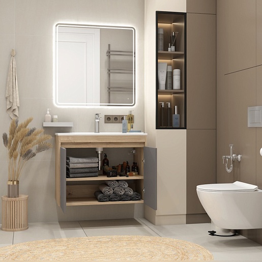 Тумба под раковину Netta 80 подвесная без фасада дуб