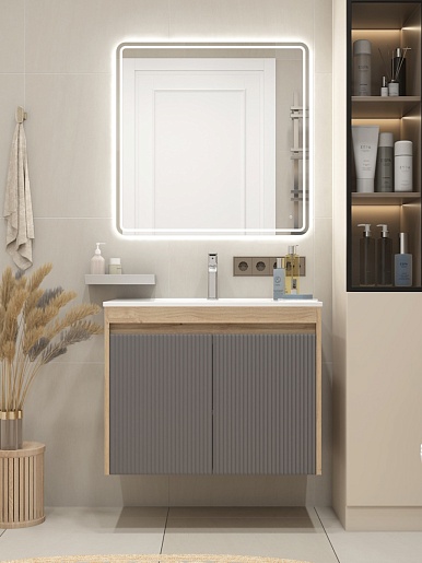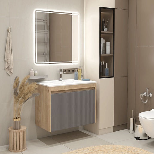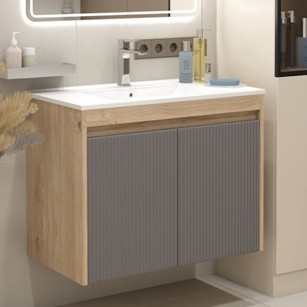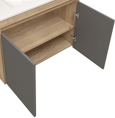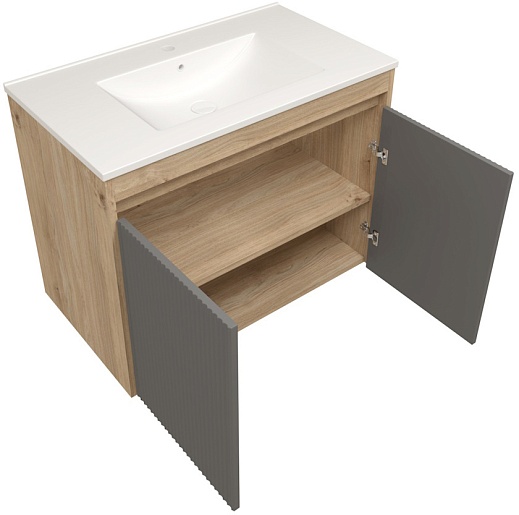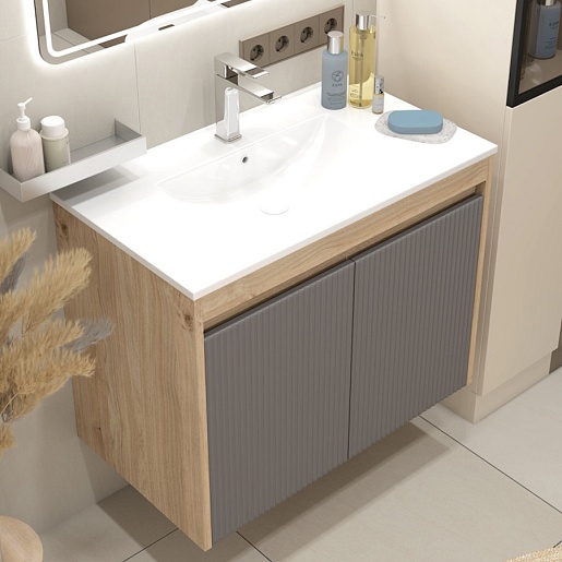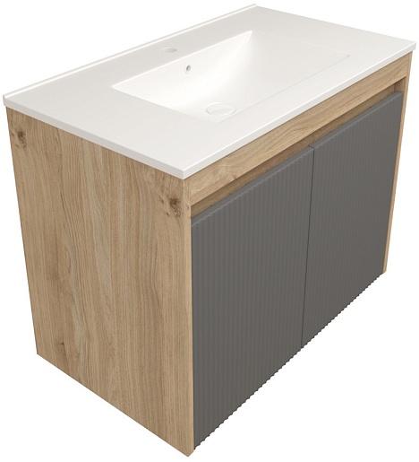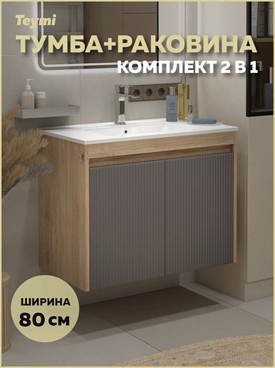Подвесная тумба с раковиной Teymi Netta 80 Волна дуб/графит - арт. T60605 / T60625 / T51001.