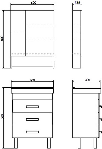В комплекте: тумба, раковина, ножка (4 шт.).