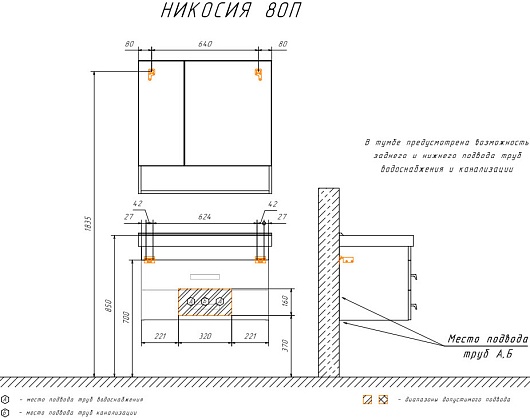 Подвесная тумба с раковиной Comforty Никосия 80П - арт. 00004138839CF.