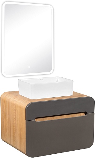 Тумба под раковину Ницца 60 подвесная графит/дуб натуральный