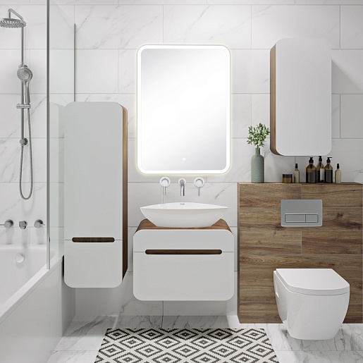 Тумба под раковину Ницца 60 подвесная белая/темное дерево