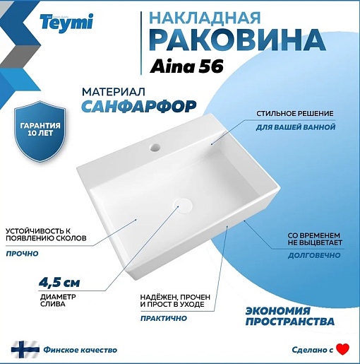 Мебельная раковина накладная Aina 56 белая T50005