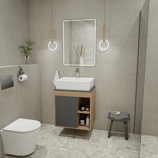 Teymi Тумба с раковиной Nura 60 дуб эврика/графит матовый T60529 раковина T50005
