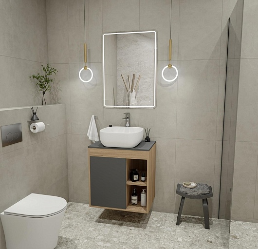 Teymi Тумба с раковиной Nura 60 дуб эврика/графит матовый T60529 раковина T50203