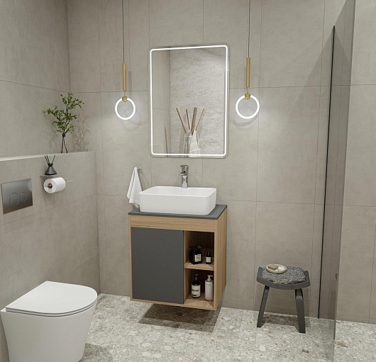 Teymi Тумба с раковиной Nura 60 дуб эврика/графит матовый T60529 раковина T50310