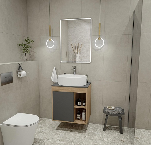 Teymi Тумба с раковиной Nura 60 дуб эврика/графит матовый T60529 раковина T50502