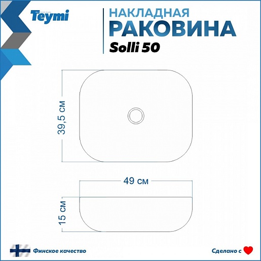 Мебельная раковина накладная Solli 50 artceramic белая T50204