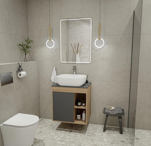 Teymi Тумба с раковиной Nura 70 дуб эврика/графит матовый T60530 раковина T50204