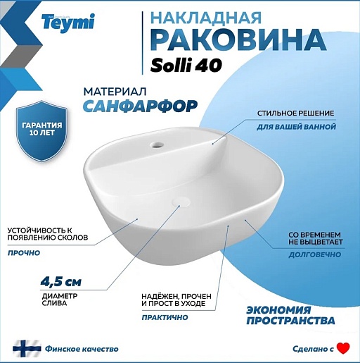 Мебельная раковина накладная Solli 40 с полочкой под смеситель белая T50207