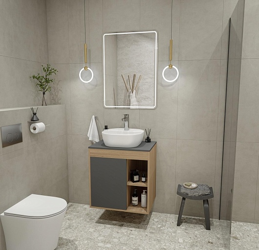 Тумба под раковину Nura 70 дуб эврика/графит матовый подвесная T60530