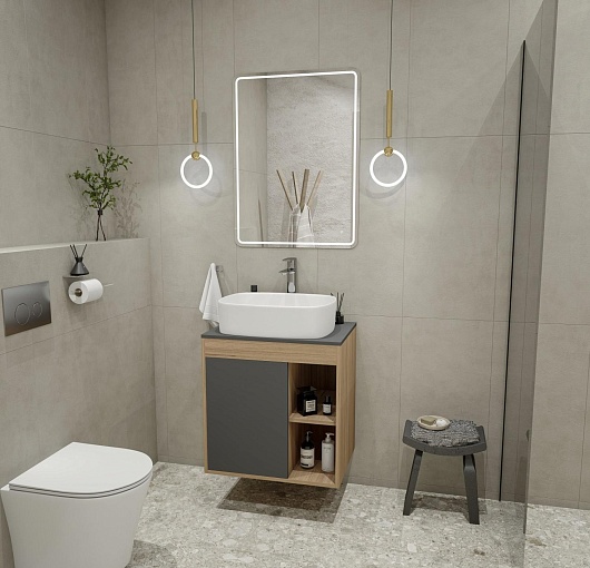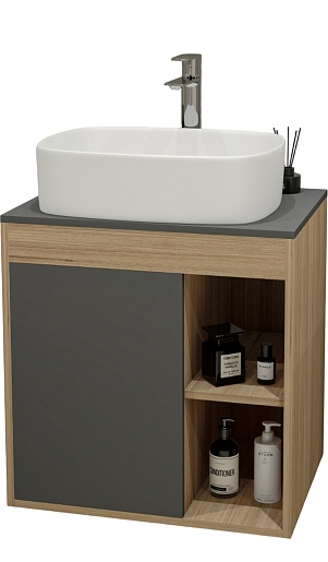 Teymi Тумба с раковиной Nura 70 дуб эврика/графит матовый T60530 раковина T50209