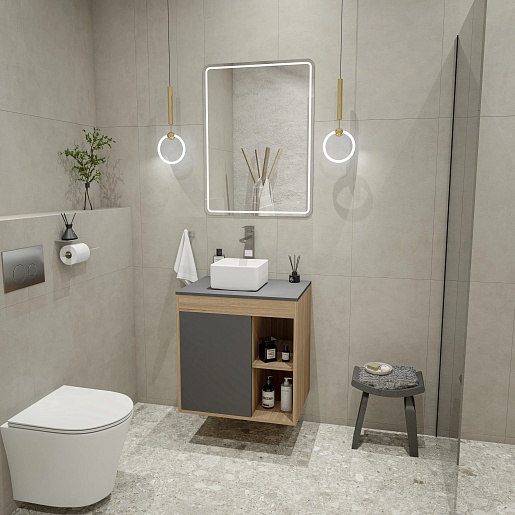Тумба под раковину Nura 70 дуб эврика/графит матовый подвесная T60530
