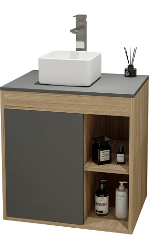 Teymi Тумба с раковиной Nura 70 дуб эврика/графит матовый T60530 раковина T50303