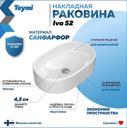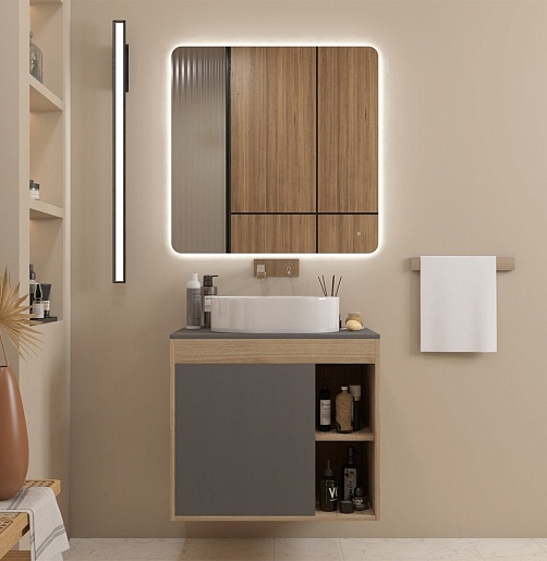 Teymi Тумба с раковиной Nura 70 дуб эврика/графит матовый T60530 раковина T50602