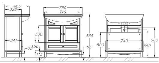 Opadiris Тумба с раковиной Омега 75 белая матовая