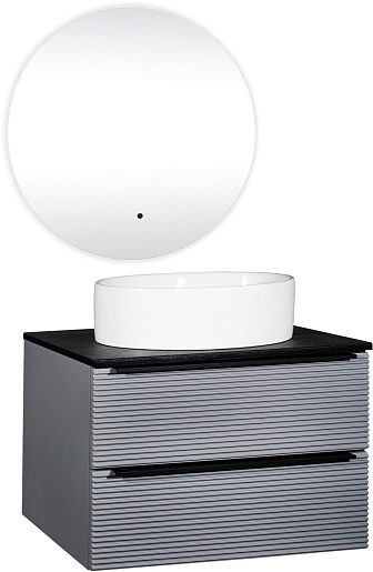 Runo Тумба с раковиной Орлеан 70 Ovale подвесная серая/черная