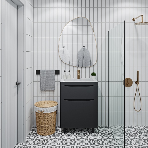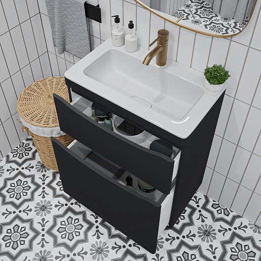 Тумба с раковиной Vivon Ostin 60 напольная черная матовая - арт. Ostin-noz-60-BL / kare-mini-60.