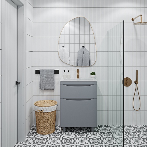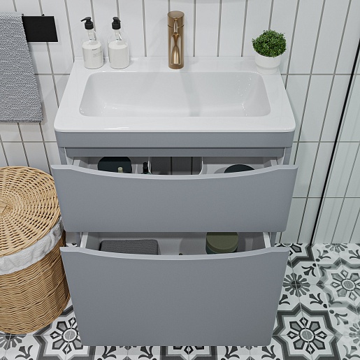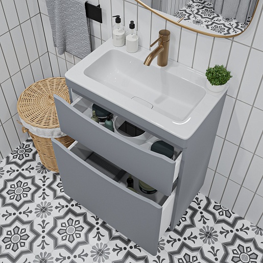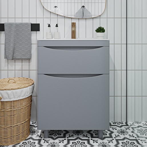 Тумба с раковиной Vivon Ostin 60 напольная серая матовая - арт. Ostin-noz-60-GR / kare-mini-60.