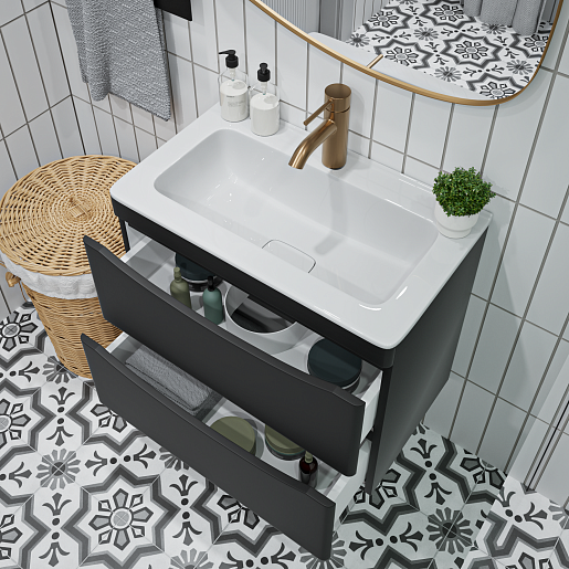 Тумба под раковину Ostin 60 подвесная черная матовая