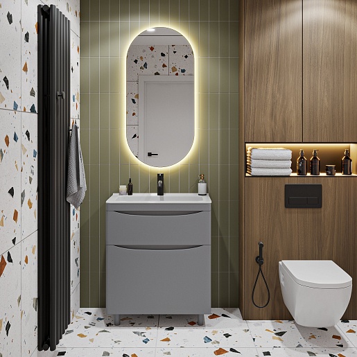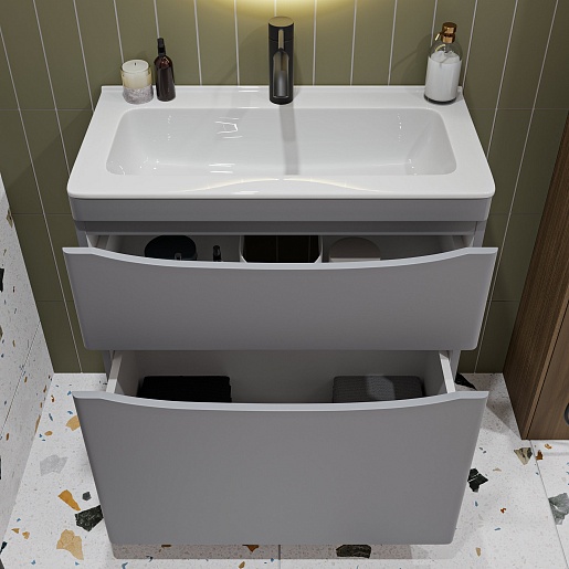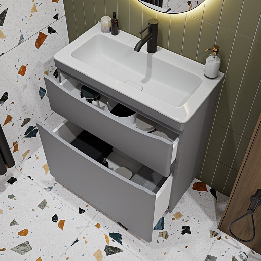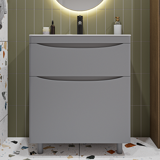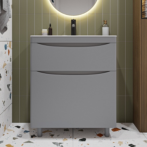 Тумба с раковиной Vivon Ostin 70 напольная серая матовая - арт. Ostin-noz-70-GR / kare-mini-70.