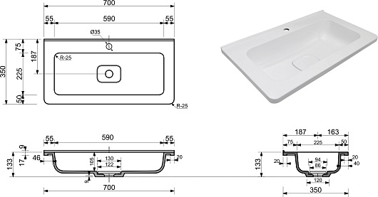 - Раковина из литьевого мрамора.