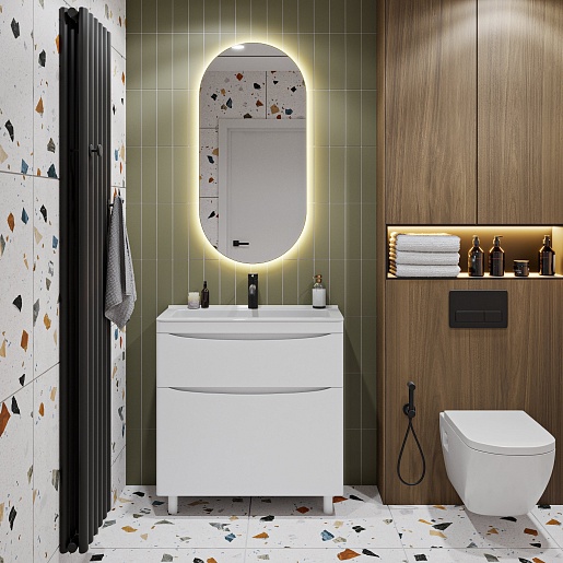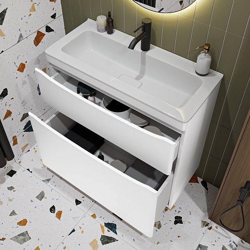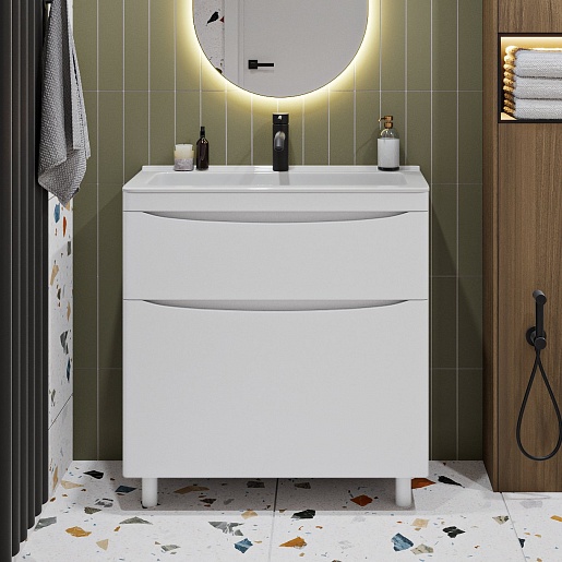 Тумба с раковиной Vivon Ostin 80 напольная белая матовая - арт. Ostin-noz-80-WH / kare-mini-80.