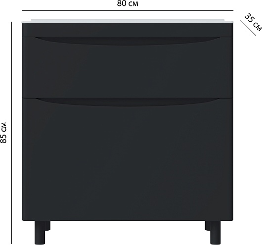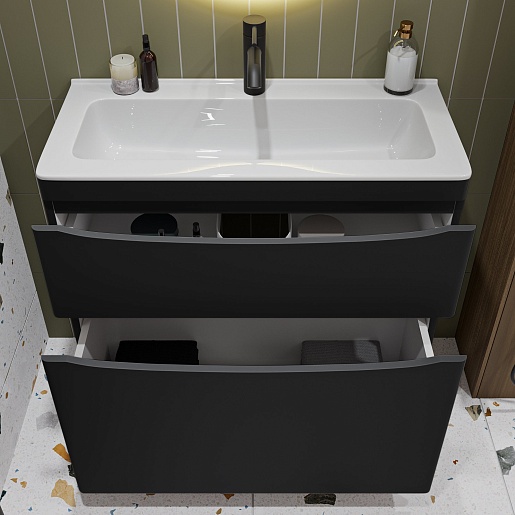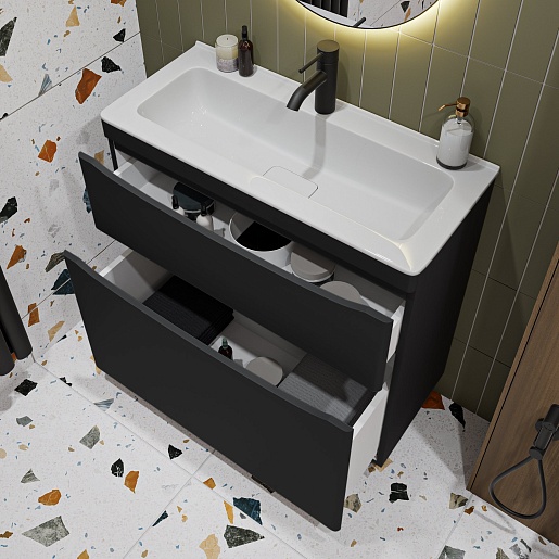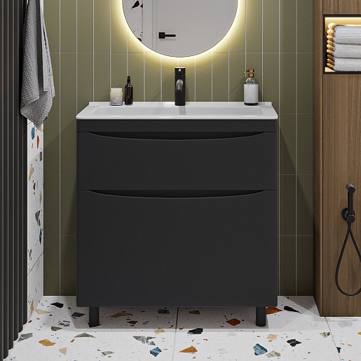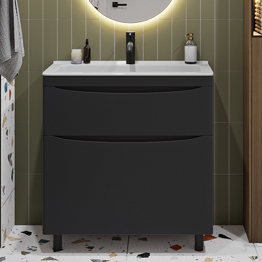 Тумба с раковиной Vivon Ostin 80 напольная черная матовая - арт. Ostin-noz-80-BL / kare-mini-80.