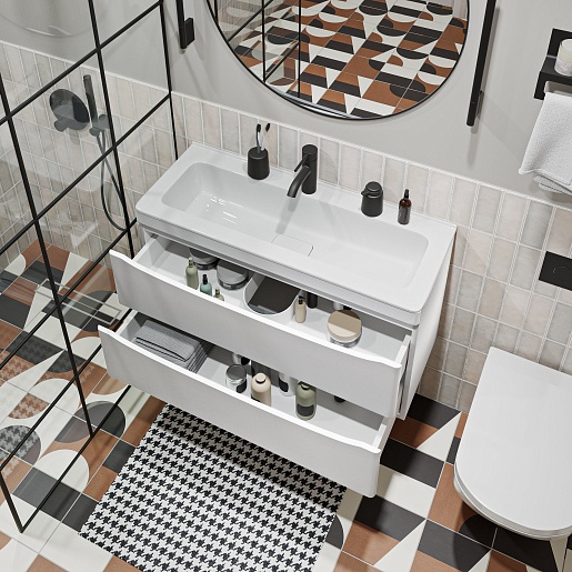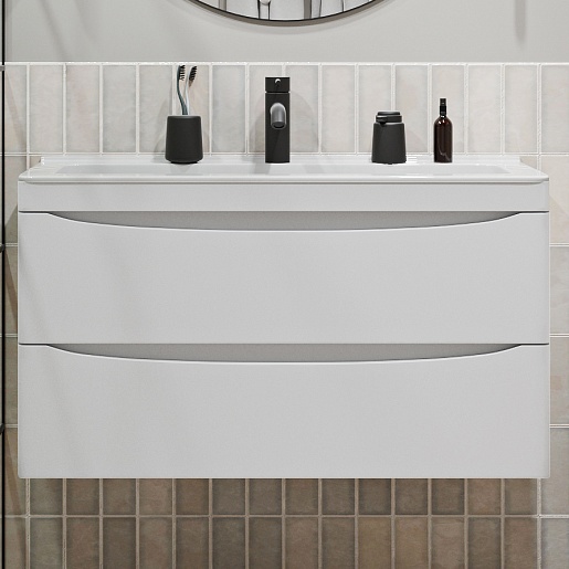 Тумба с раковиной Vivon Ostin 90 подвесная белая матовая - арт. Ostin-podv-90-WH / kare-mini-90.