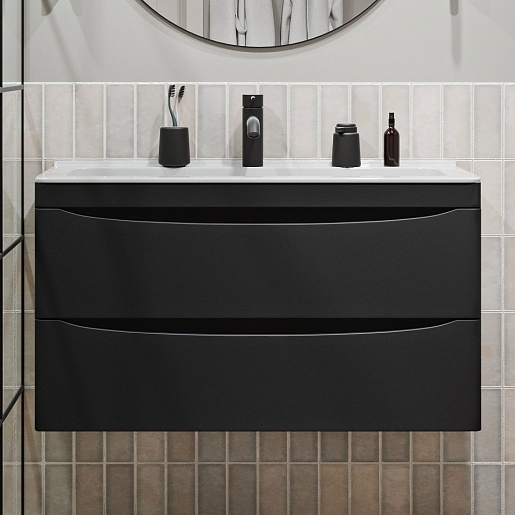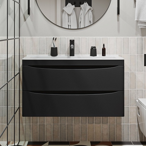 Тумба под раковину Ostin 90 подвесная черная матовая