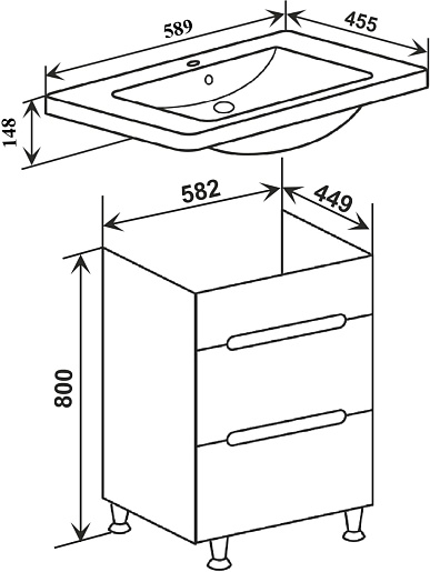 В комплекте: тумба, раковина, ножка (4 шт.).
