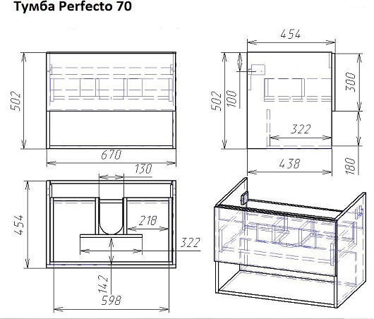 Подвесная тумба с раковиной Dreja Perfecto 70 - арт. 99.0812 / 641600.