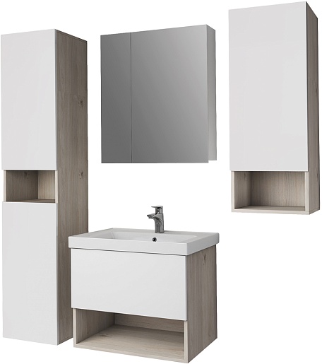 Тумба под раковину Perfecto 70 подвесная белая/дуб эврика
