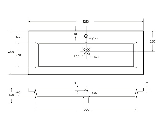 Мебельная раковина 121/46 CZR-8070-120 белая глянцевая