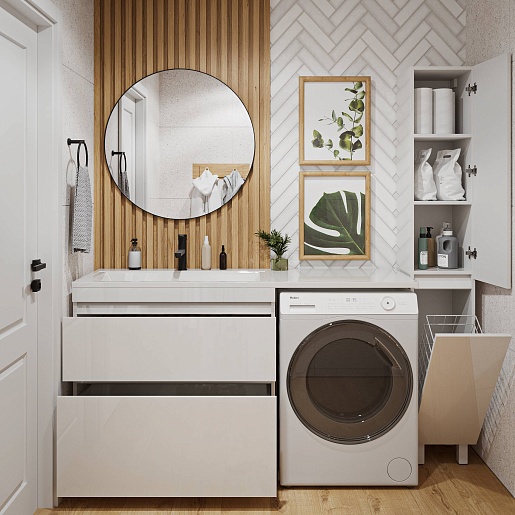 - Раковина с местом для размещения стиральной машины.