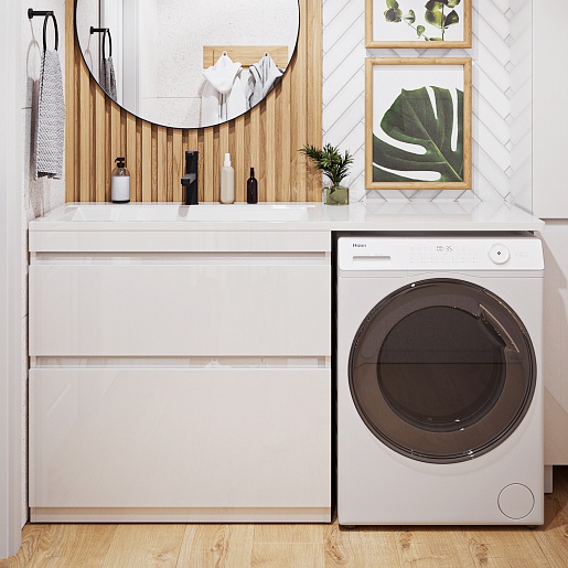 Тумба под раковину под стиральную машину Donna 150 2 ящика напольная белый глянец
