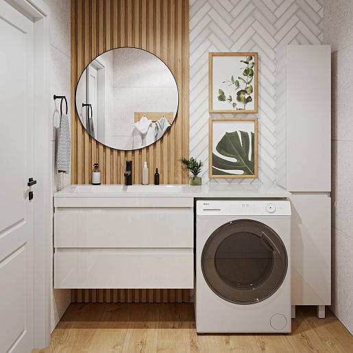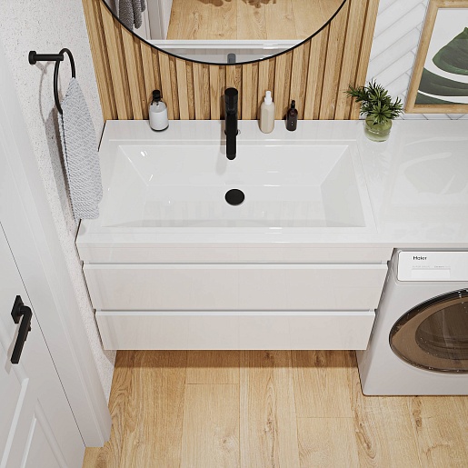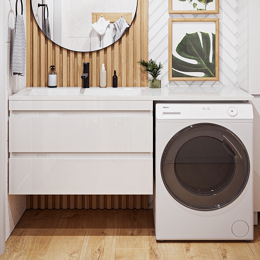 - Раковина из литьевого мрамора с местом для установки стиральной машины.