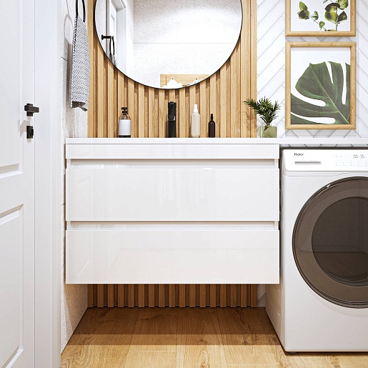 - Для размещения ванных принадлежностей предусмотрено два вместительных ящика, оснащенных направляющими с механизмом плавного закрытия - доводчиками.