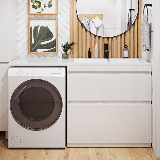 Тумба под раковину под стиральную машину Donna 150 2 ящика напольная белый глянец