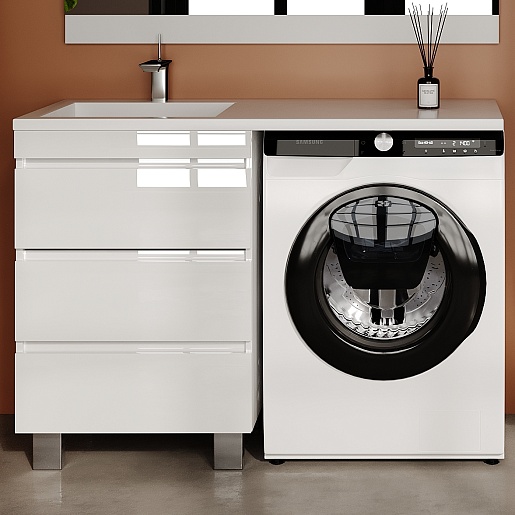 Style Line Тумба с раковиной под стиральную машину Леон 120 L 3 ящика Люкс Plus белая