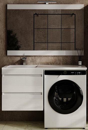 Подвесная тумба с раковиной под стиральную машину Style Line Леон 120 L Люкс Plus - арт. СС-00002440 / СС-00002436 / СС-00002448.