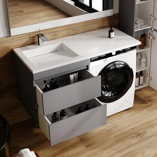 - Раковина из литьевого мрамора с крылом с местом под установку стиральной машины.
